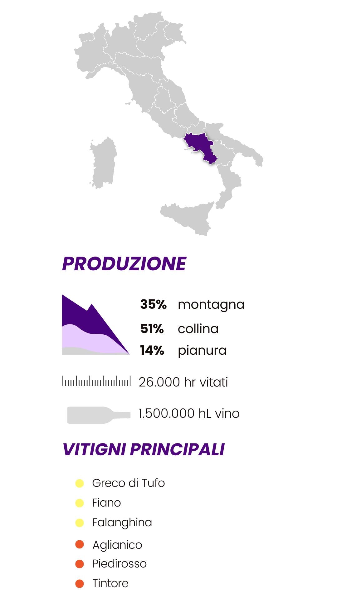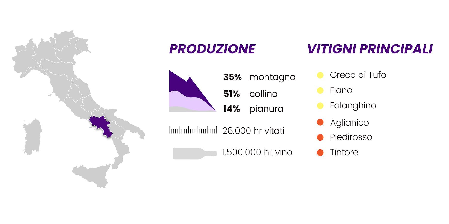 Aglianico, Piedirosso, Falanghina, Greco di Tufo, Asprinio