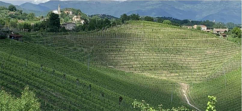 In the territory of Treviso, the hills, originally sea floors uplifted millions of years ago, are now fertile ground for viticulture.